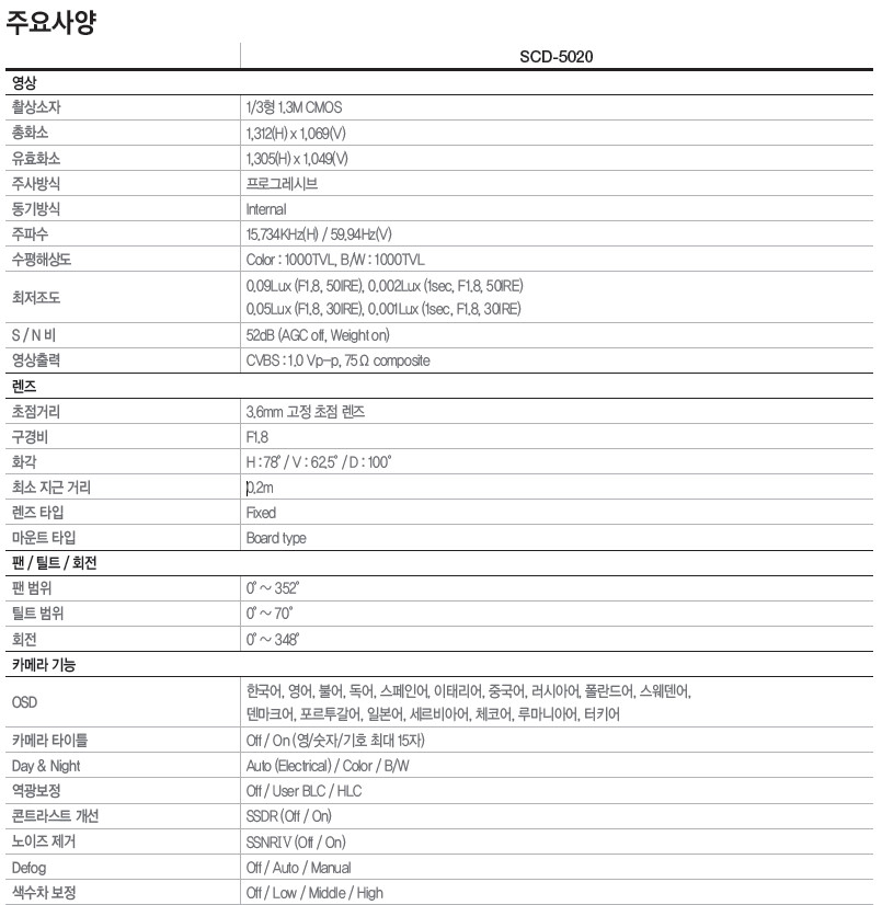 1000TVL (1280H)ÀÇ °íÇØ»óµµ ¾Æ³¯·Î±× Ä«¸Þ¶ó