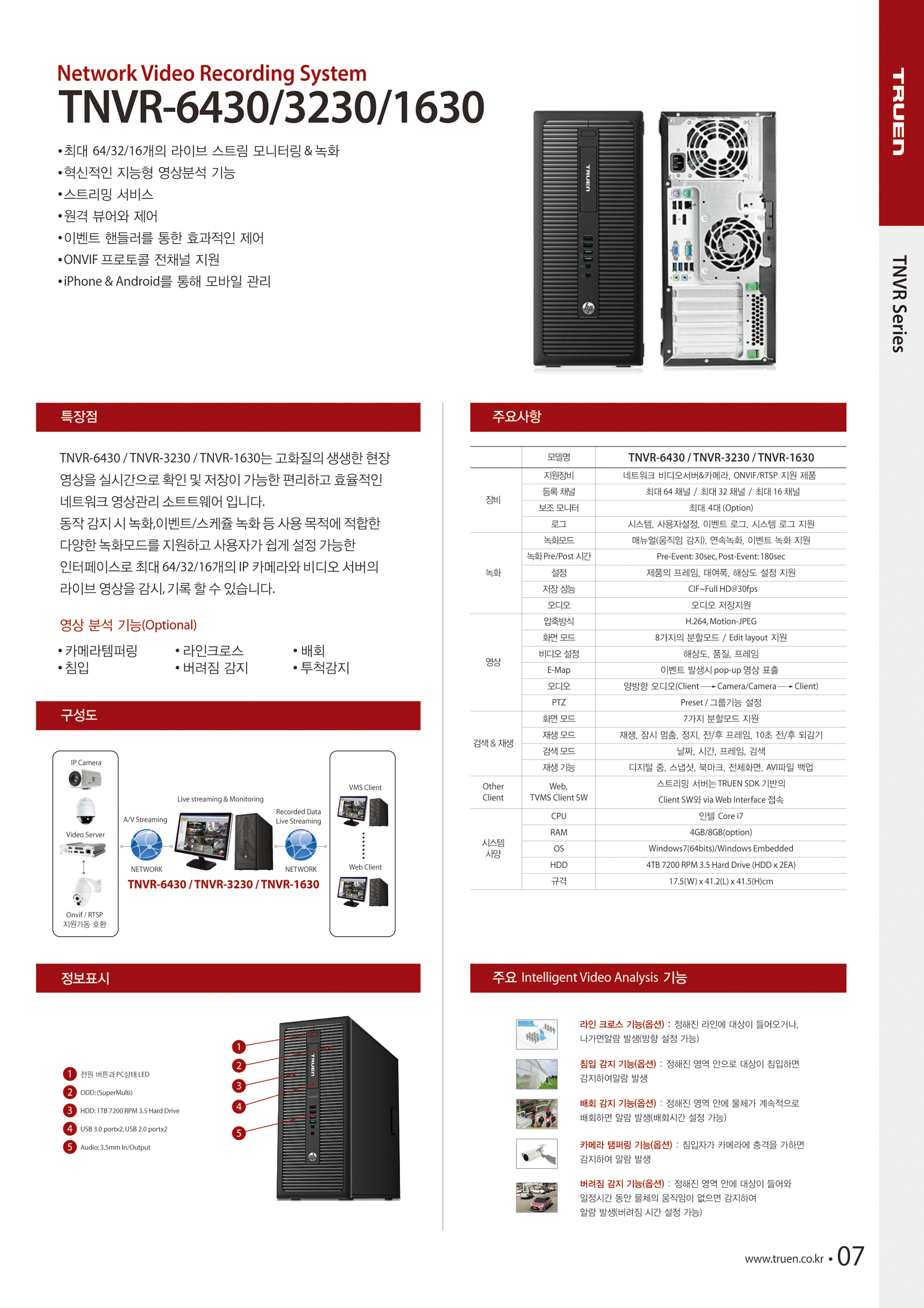TNVR-6430/3230/1630Àº °íÈ­ÁúÀÇ ÇöÀå ¿µ»óÀ» ½Ç½Ã°£À¸·Î È®ÀÎ ¹× ÀúÀåÀÌ °¡´ÉÇÑ ³×Æ®¿öÅ© ¿µ»ó°ü¸® ÀåÄ¡ ÀÔ´Ï´Ù. µ¿ÀÛ °¨Áö ½Ã ³ìÈ­, À̺¥Æ®/½ºÄÉÁì ³ìÈ­ µî »ç¿ë ¸ñÀû