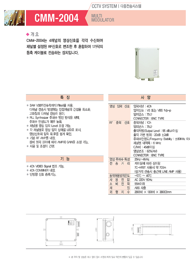 4CH ¿µ»óÀ» RF½ÅÈ£·Î º¯Á¶ÇÏ¿© 1µ¿Ãà ÄÉÀ̺í·Î Àü¼Û