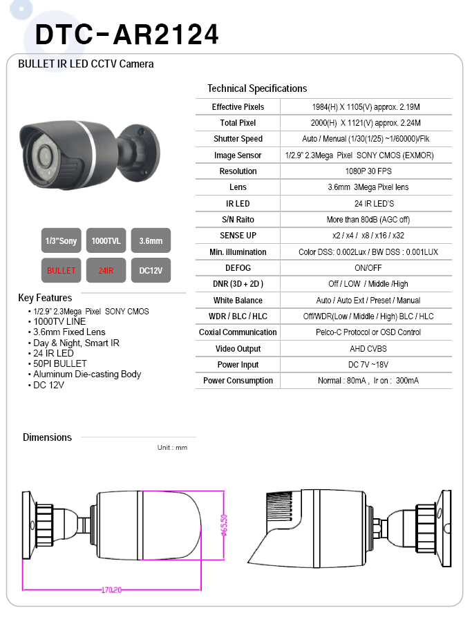 µðÁöÆ® / 210¸¸ È­¼Ò Bullet IR / 1280H Analog Composite Output (NTSC/PAL)