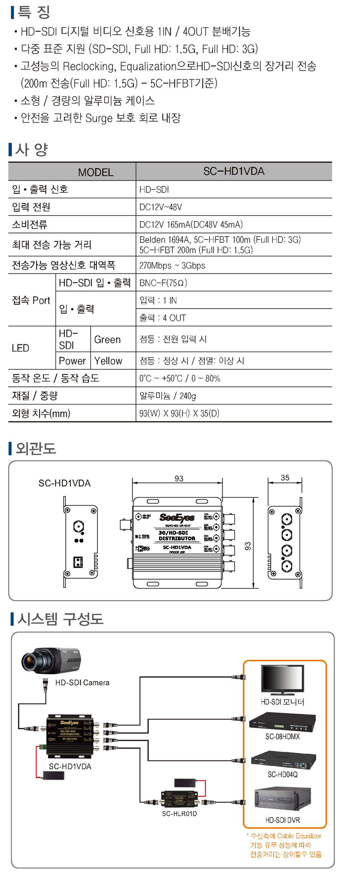 HD-SDI ¿µ»ó 1 IN / 4 OUT, ´Ù¾çÇÑ ÇØ»óµµÁö¿ø( SD-SDI, HD-SDI, 3G-SDI), Surge ȸ·Î ³»Àå