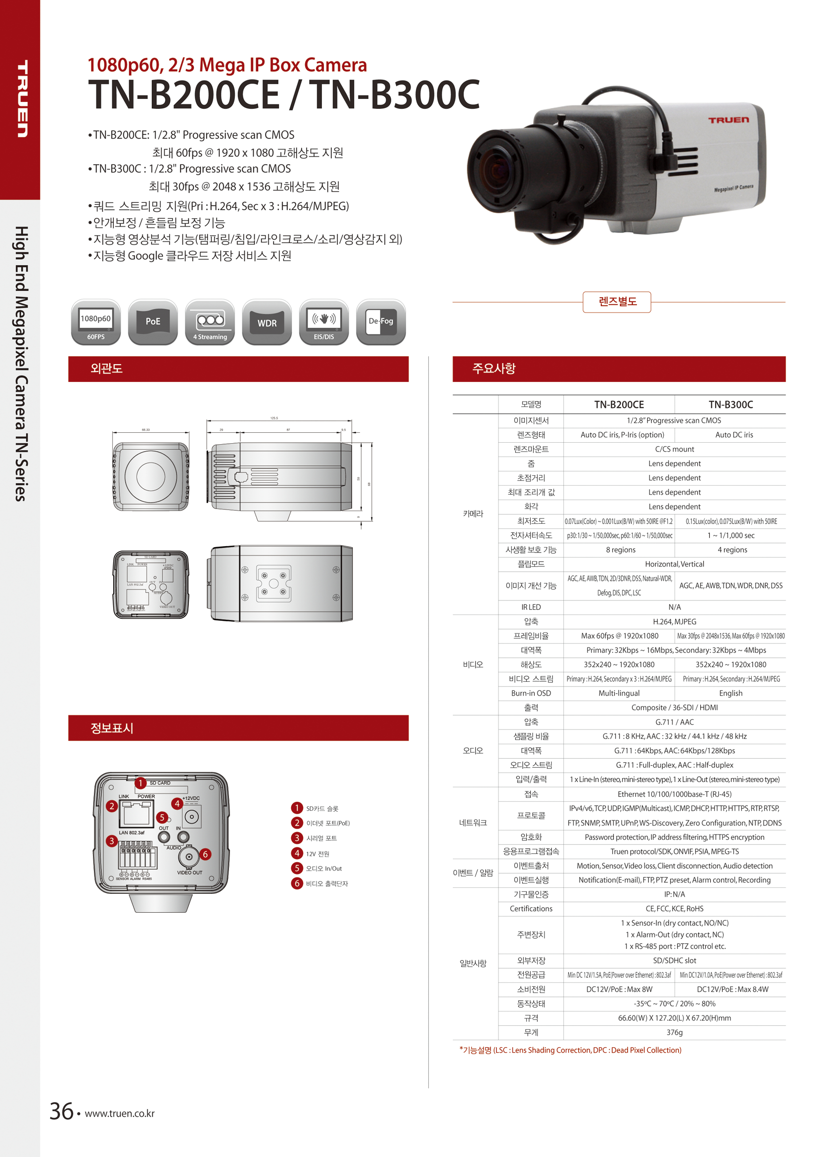 1080p 60fps, TN-B300C´Â 300¸¸ È­¼ÒÀÇ ³ôÀº ÇØ»óµµ¿Í Çâ»óµÈ ÀúÁ¶µµ À̹ÌÁö °³¼± ±â¼ú·Î ³ëÀÌÁî°¡ °ÅÀÇ ¾øÀ» »Ó¸¸ ¾Æ´Ï¶ó ¼³Ä¡°¡ °£ÆíÇÕ´Ï´Ù.