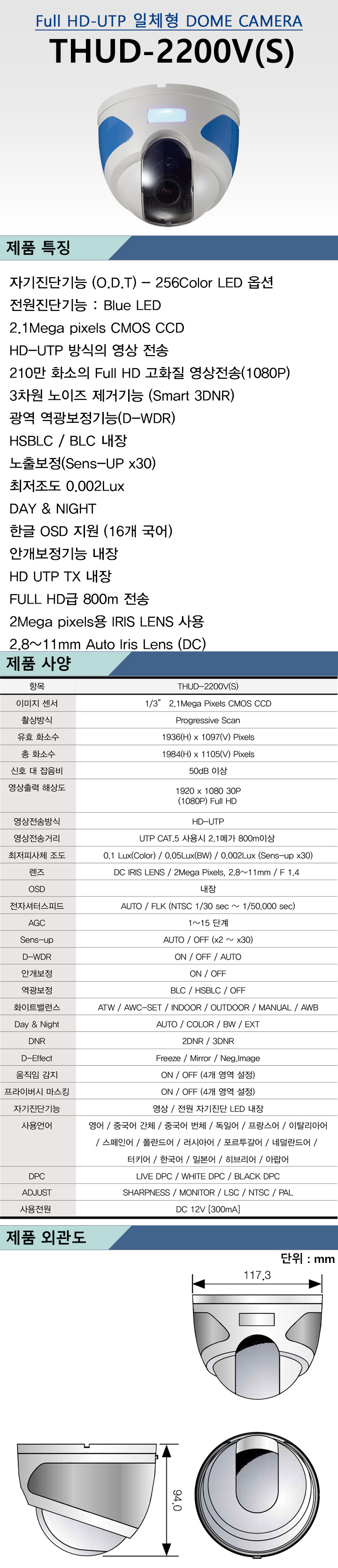 1/3" Progressive Scan CMOS 210¸¸È­¼Ò / HD-UTP ¹æ½Ä/ 0.002Lux