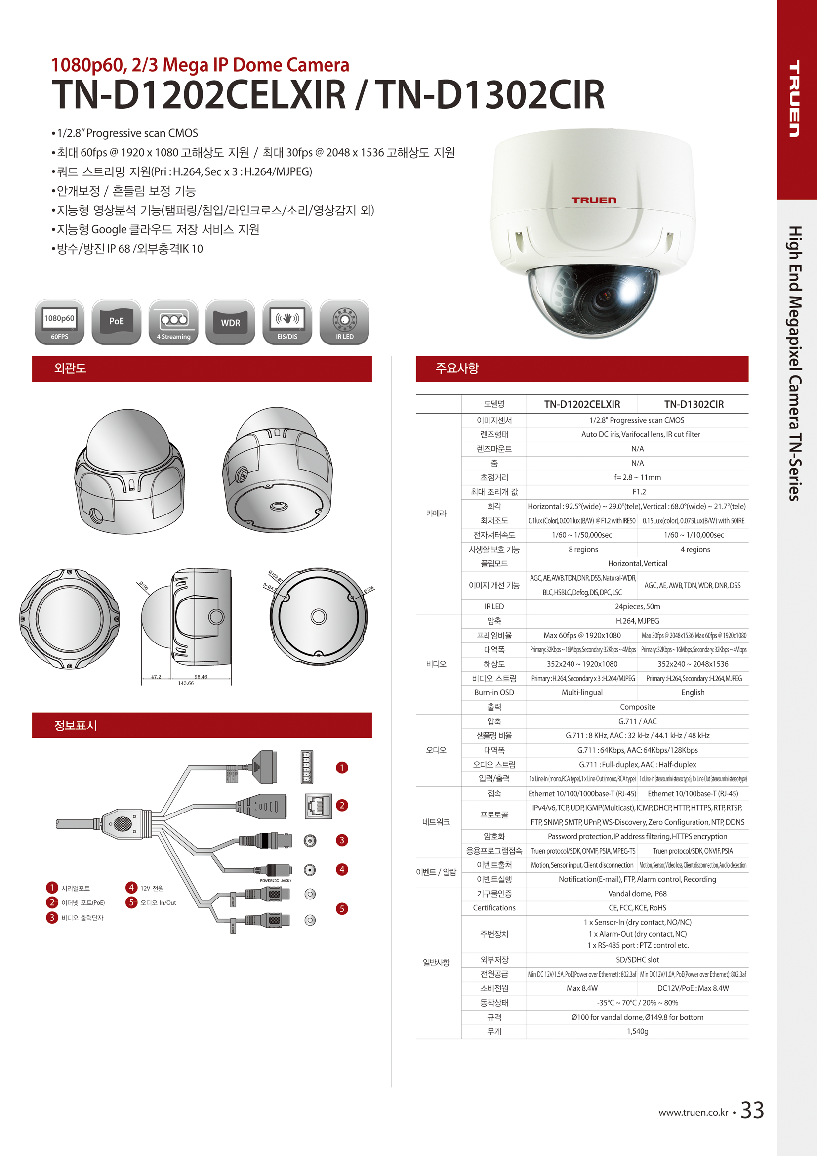 1080p 60fps, TN-D1302CIR´Â 300¸¸ È­¼ÒÀÇ ³ôÀº ÇØ»óµµ¿Í Çâ»óµÈ ÀúÁ¶µµ À̹ÌÁö °³¼± ±â¼ú·Î ³ëÀÌÁî°¡ °ÅÀÇ ¾øÀ» »Ó¸¸ ¾Æ´Ï¶ó ¼³Ä¡°¡ °£ÆíÇÕ´Ï´Ù.