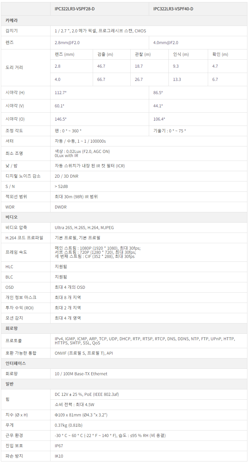 IPC322LR3-VSPF40-D / IP³×Æ®¿öÅ© Àû¿Ü¼± µ¼ Ä«¸Þ¶ó