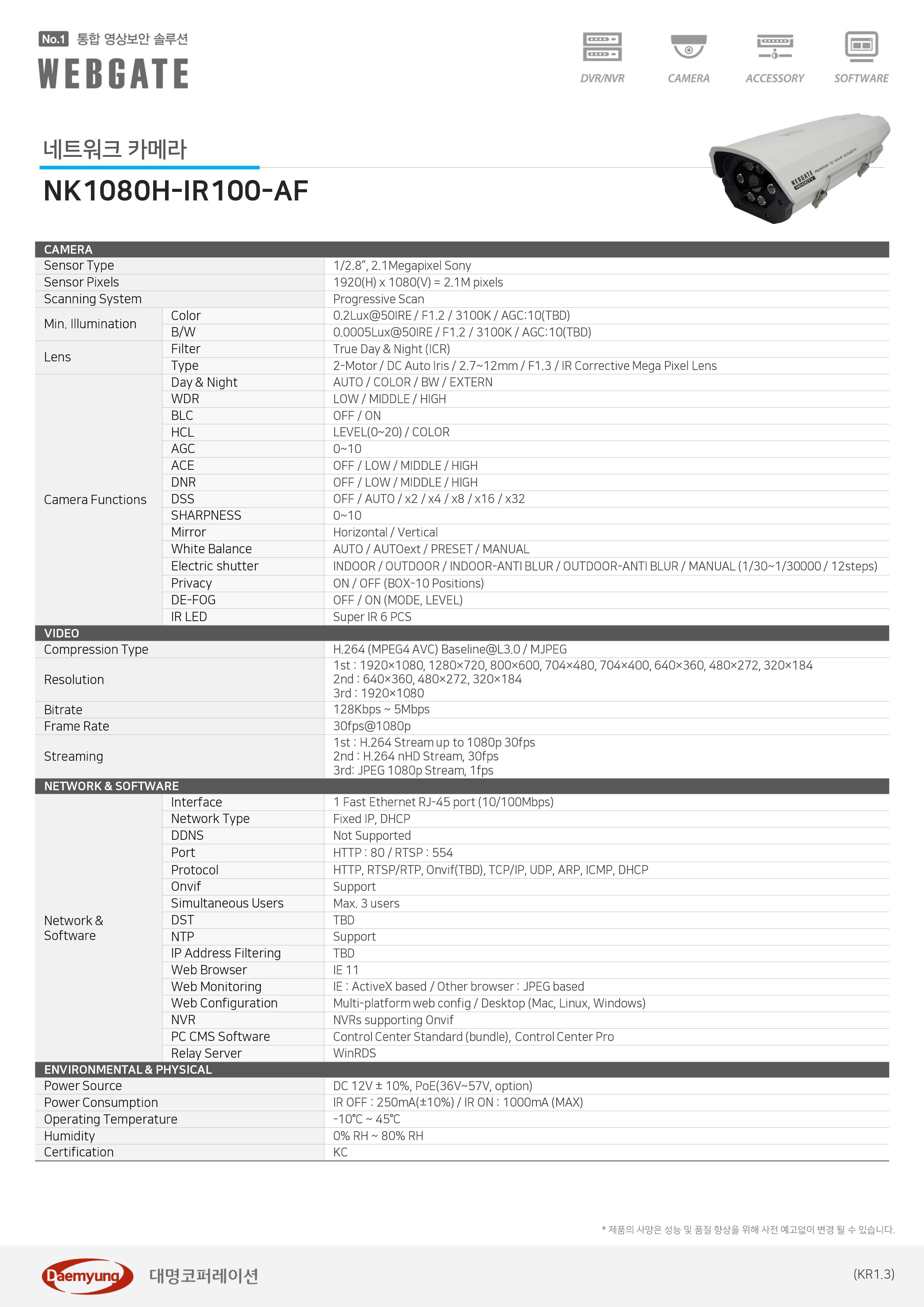 NK1080H-IR100-AF/2.1M ³×Æ®¿öÅ© Àû¿Ü¼± ÇÏ¿ì¡ī¸Þ¶ó