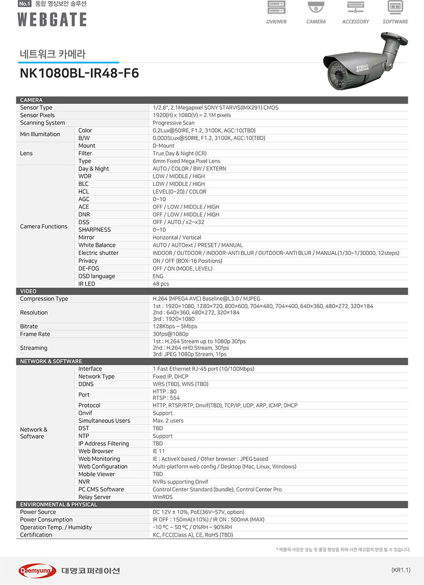 À¥°ÔÀÌÆ®/NK1080BL-IR48-F6/210¸¸ IP Àû¿Ü¼±Ä«¸Þ¶ó
