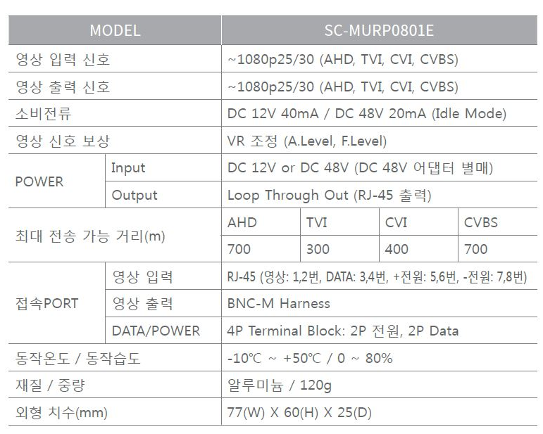 HD Analog (AHD/TVI/CVI), CVBS UTP ACTIVE Àü¿ø°ø±Þ ±â´ÉÇü ¼ö½Å±â