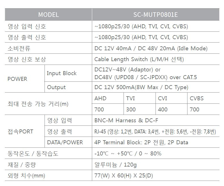 HD Analog (AHD/TVI/CVI), CVBS UTP ACTIVE Àü¿ø°ø±Þ ±â´ÉÇü ¼Û½Å±â